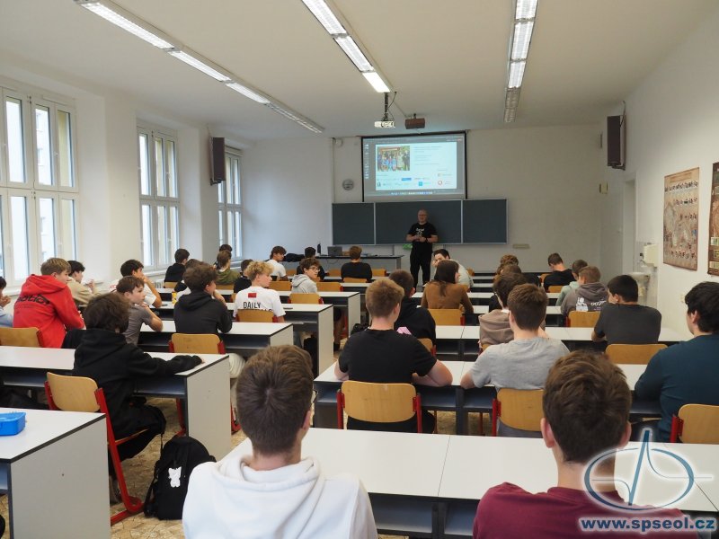V pátek 26. září proběhlo na naší škole krátké představení projektu Evropské vesmírné agentury ESA pro žáky prvního ročníku. Formou poutavé přednášky se seznámili s možnostmi, které projekt nabízí – od účasti v mezinárodních soutěžích přes programování kódu, který může „odletět“ do vesmíru, až po stavbu vlastního satelitu.