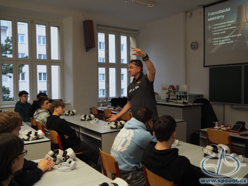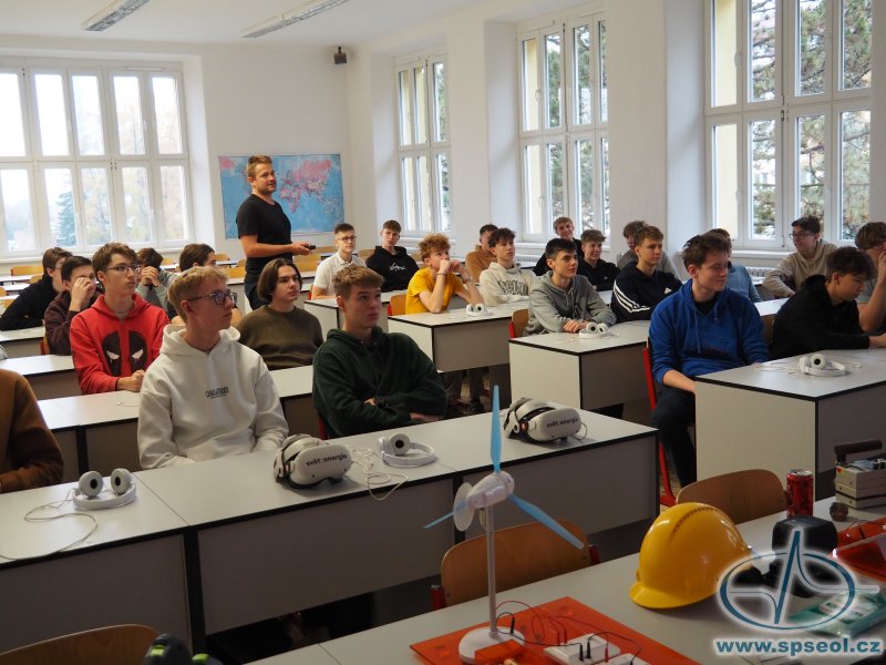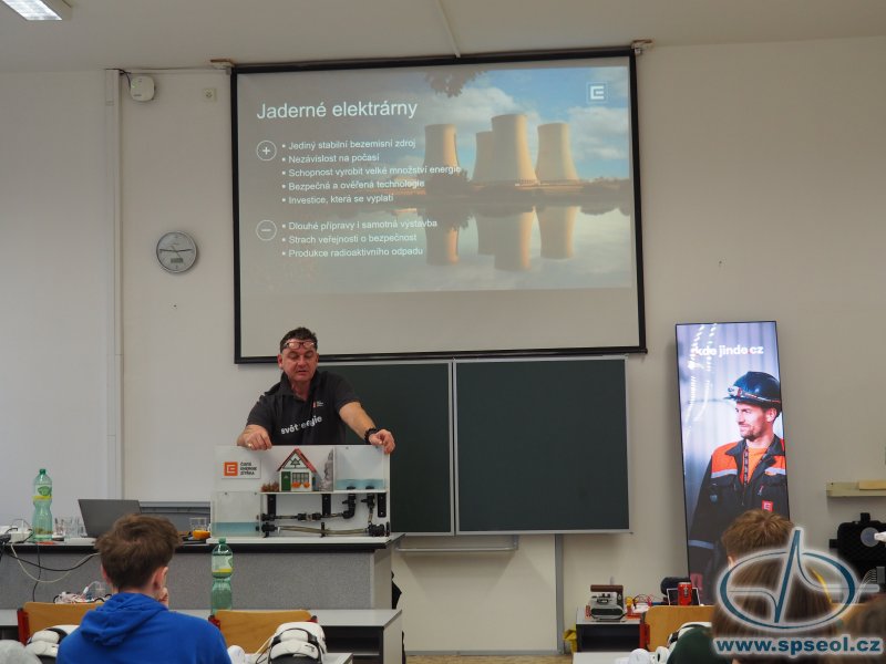 Naši školu navštívili zaměstnanci skupiny ČEZ s interaktivní přednáškou Setkání s energií. Program byl nabitý informacemi, fyzikálními pokusy a jeho zlatým hřebem byla virtuální prohlídka jaderné elektrárny – od kontrolovaného pásma až po chladicí věž. Virtuální brýle nabídly skutečně autentický zážitek, který by jinak nebylo možné zprostředkovat.
